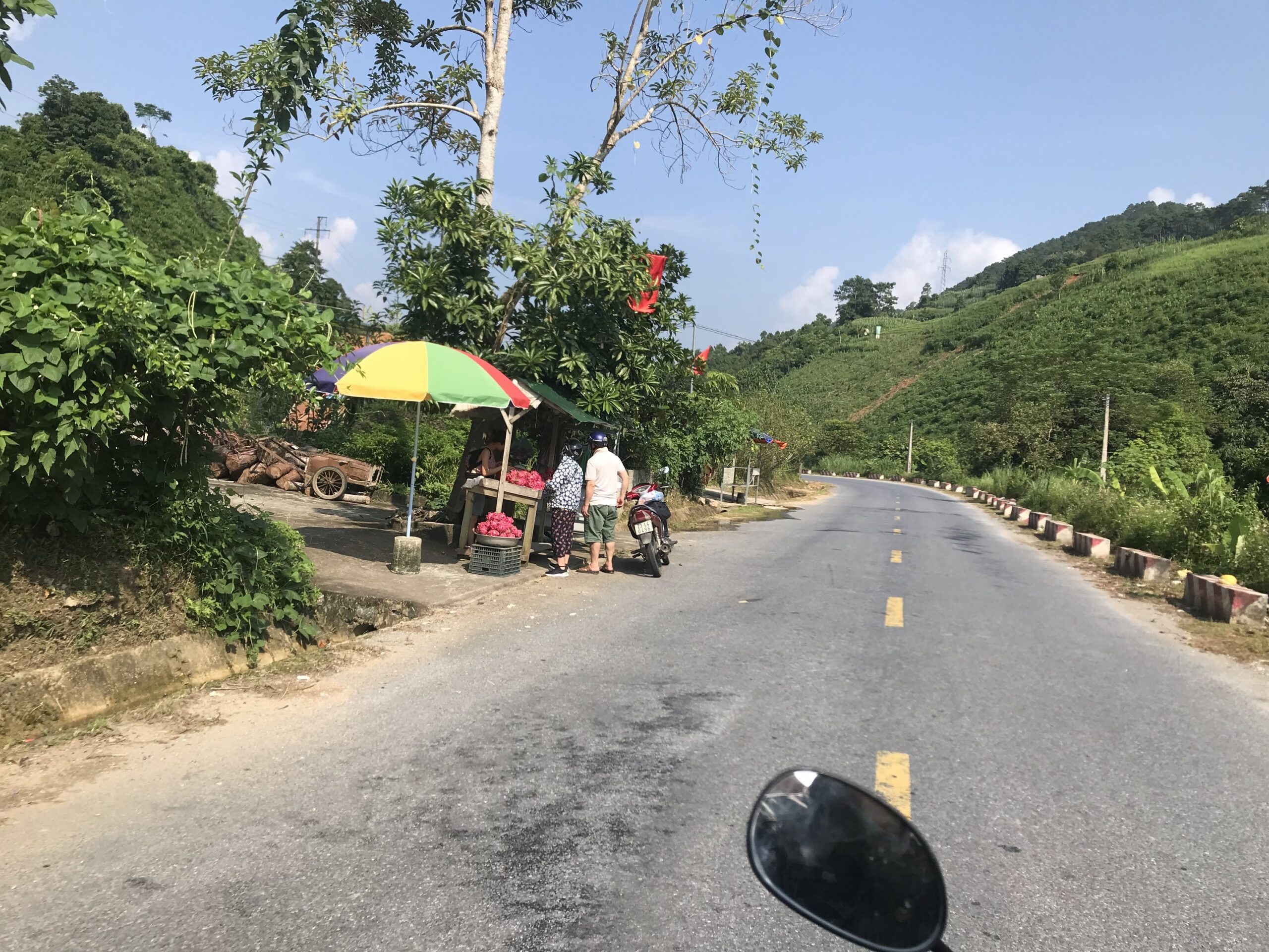 朝食を食べたら、ホイさんのバイクに乗って、今日のツーリングスタートです。最初の目的地は、ニョークエ川のボート乗り場。