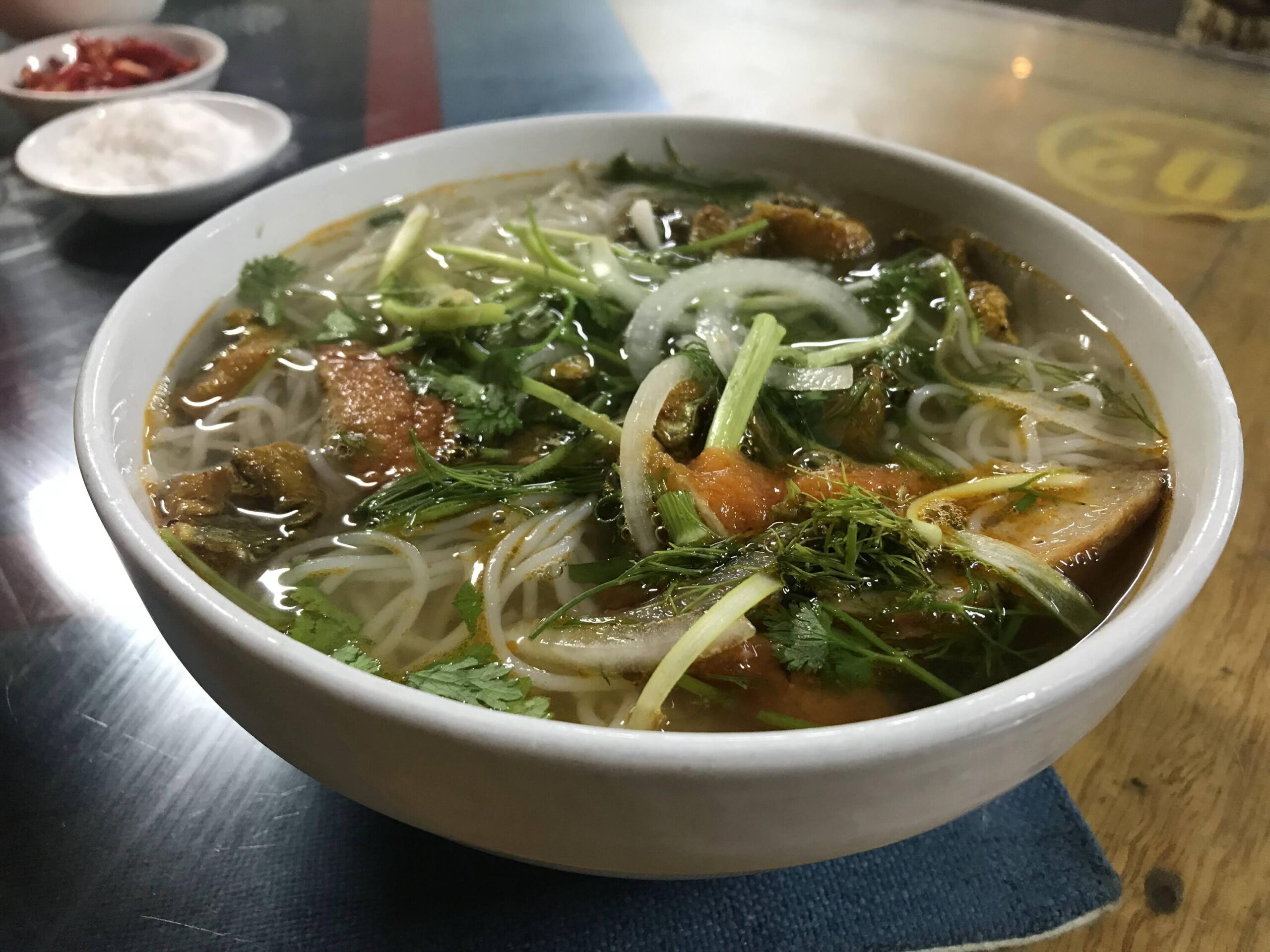 がっつりお肉たっぷりのブンボーフエをいただきました。ブンボーフエというのは、中部の都市フエの名物麺。ちょっと太めの米麺とピリ辛い味付けが特徴です。