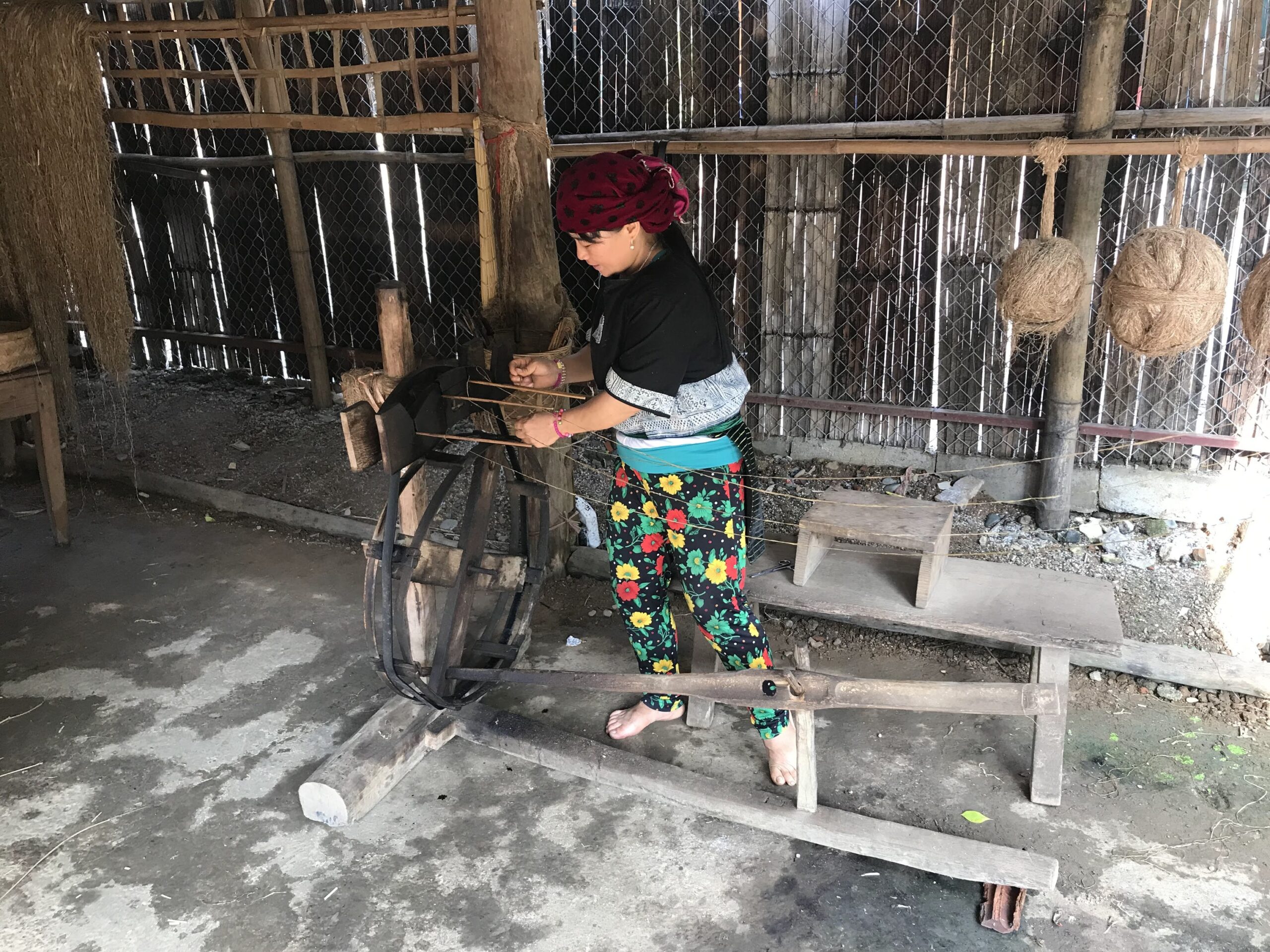 日本でも見るような機織り機。