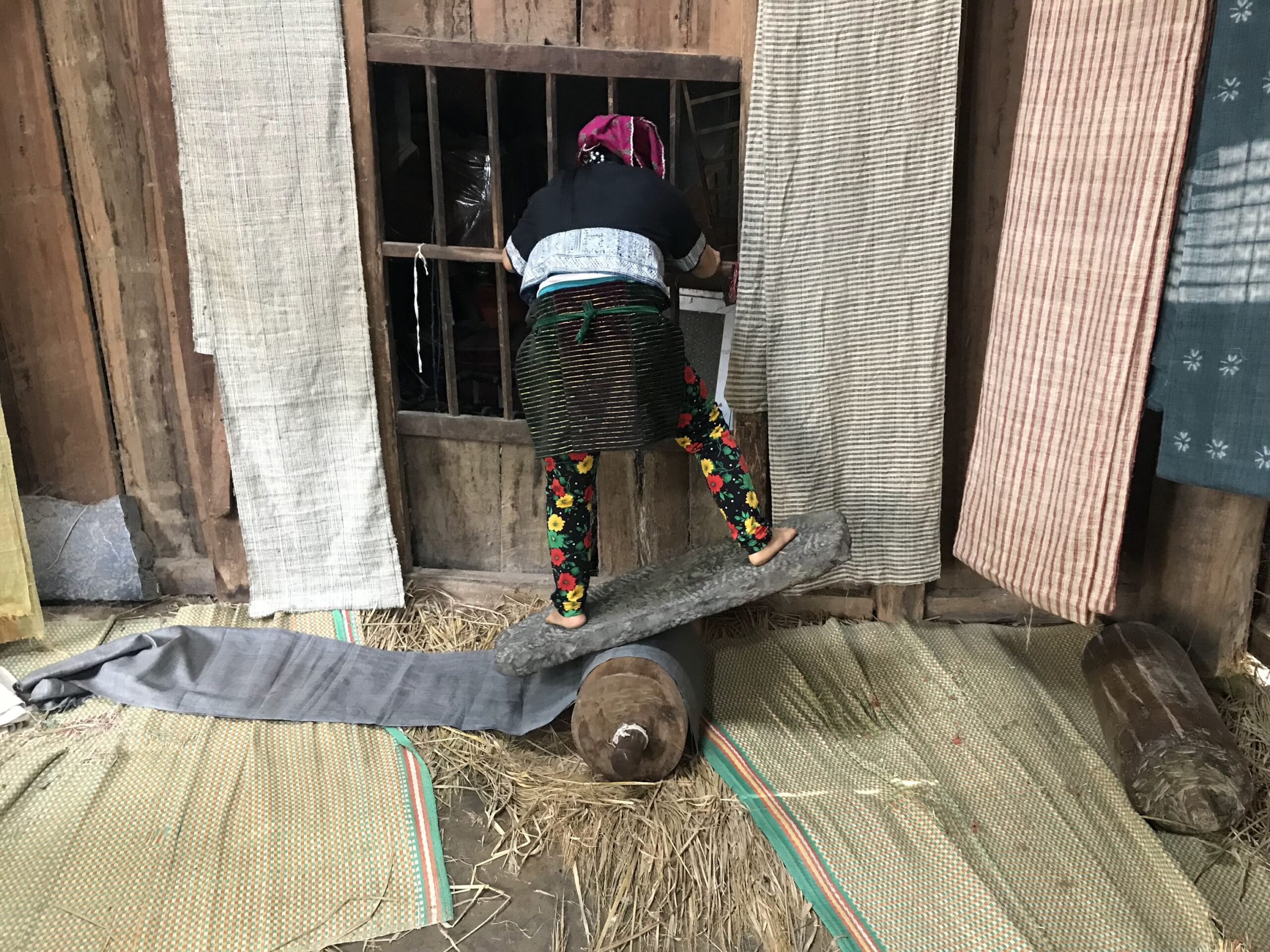 これは、石の板で布をのばしているところ。