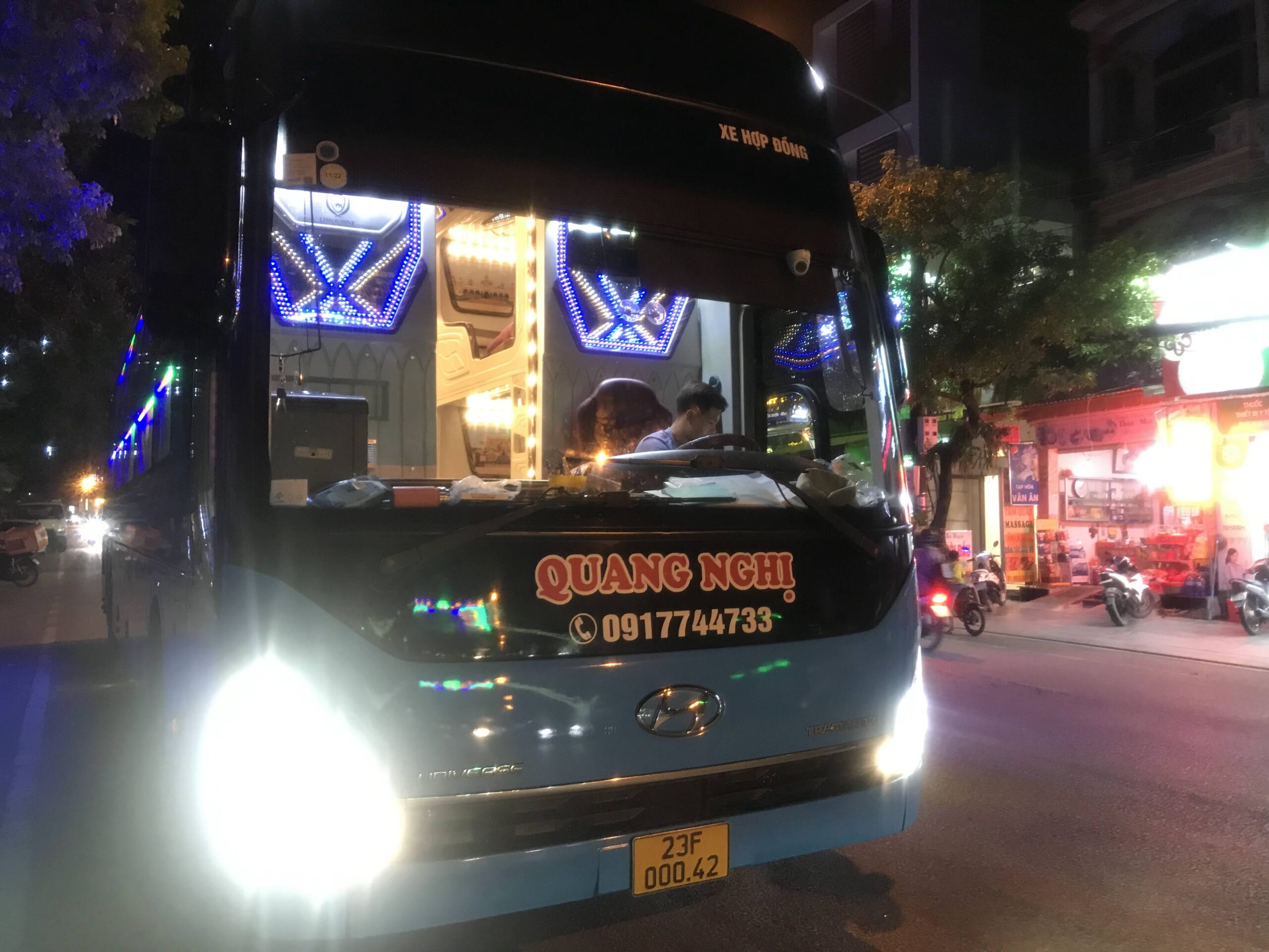 夜の9時、帰りのバスがゲストハウス前にやってきました。来たときと同様、寝台バスに乗ってハノイへ帰ります。