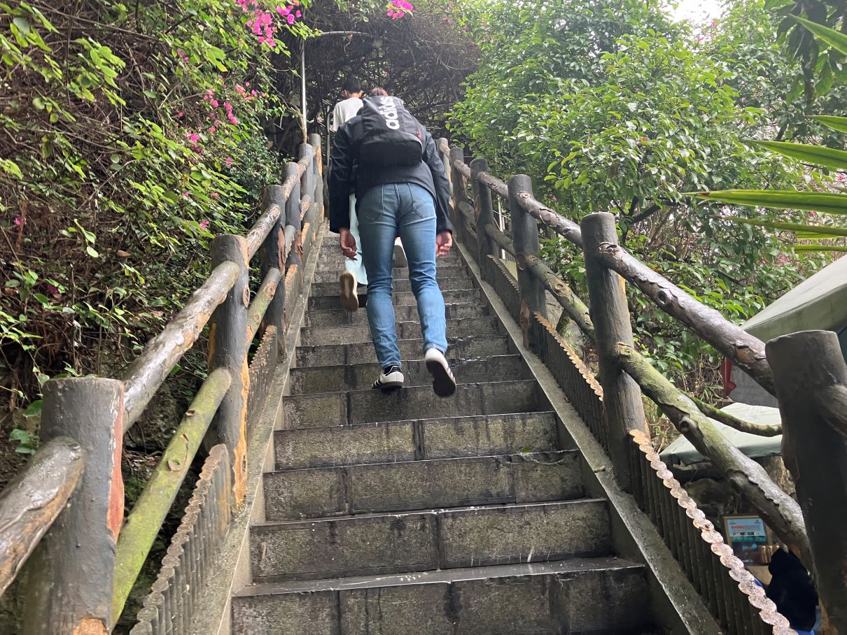 階段をのぼって鍾乳洞の入口へと向かいます。特別、滑りやすい、というわけでもありませんが、濡れているので一応、気をつけて上りましょう