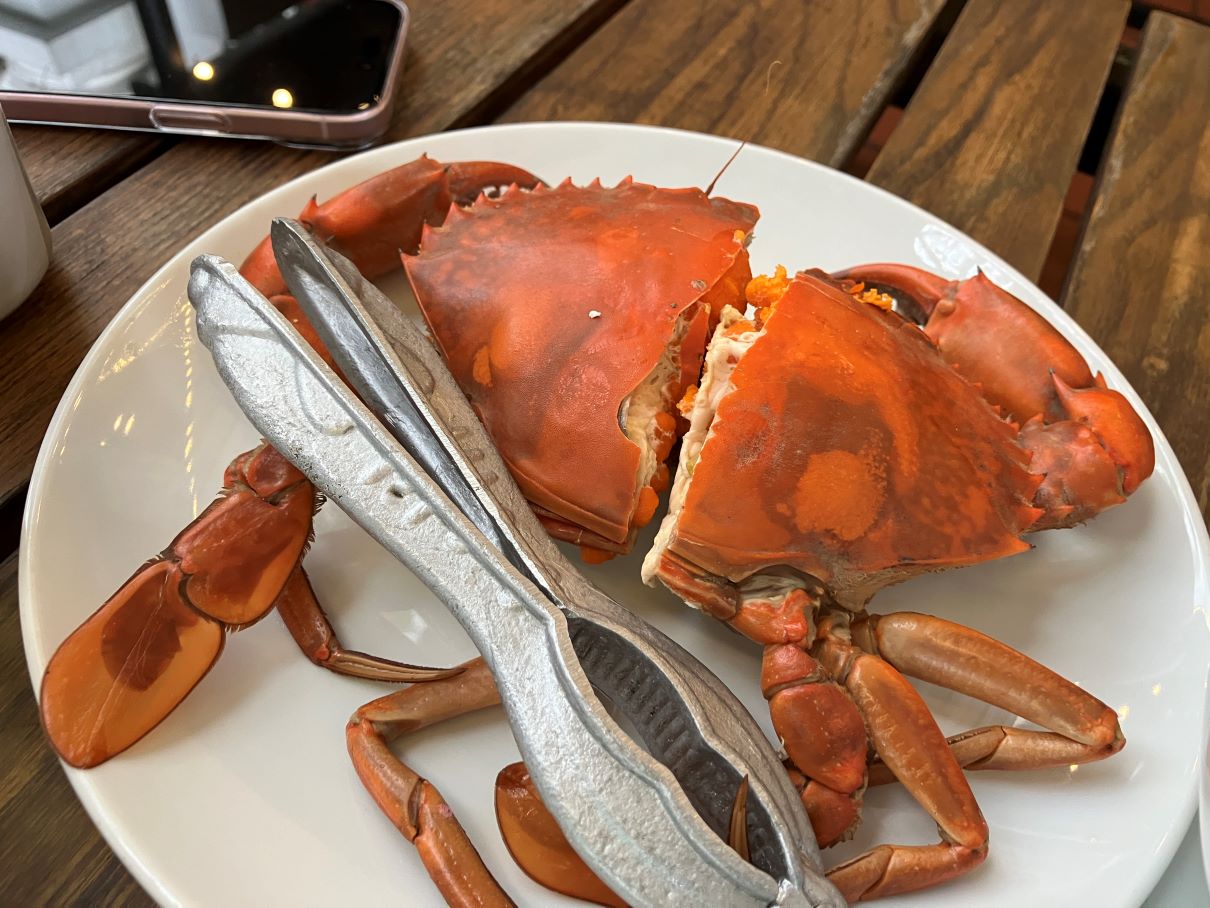 私は船の中で食事をせず、ハロン湾のレストランへ行き、友人とカニを堪能いたしました。