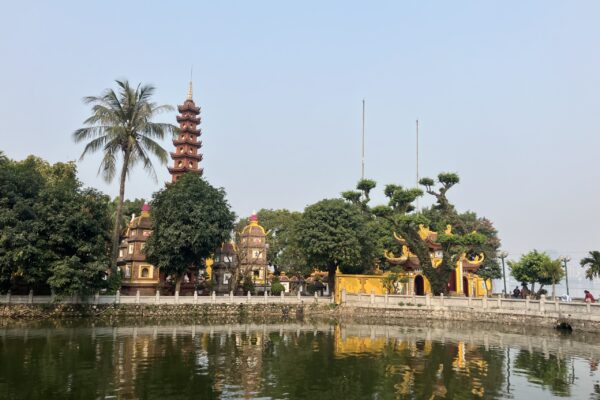 鎮国寺(チャンクオック寺)は6世紀ごろに建てられたお寺で、ハノイ最古の仏教寺院と言われています。建立当時は別の場所にあったのですが、土砂が崩れてきたため1616年、現在の場所に移転されました。