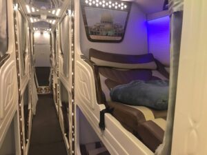 寝台バスには、通常の2段ベッド3列シートのバスと、個室タイプのキャビンバスの2種類があります。6時間強のバス旅になるので、くつろげるキャビンバスはおすすめです。