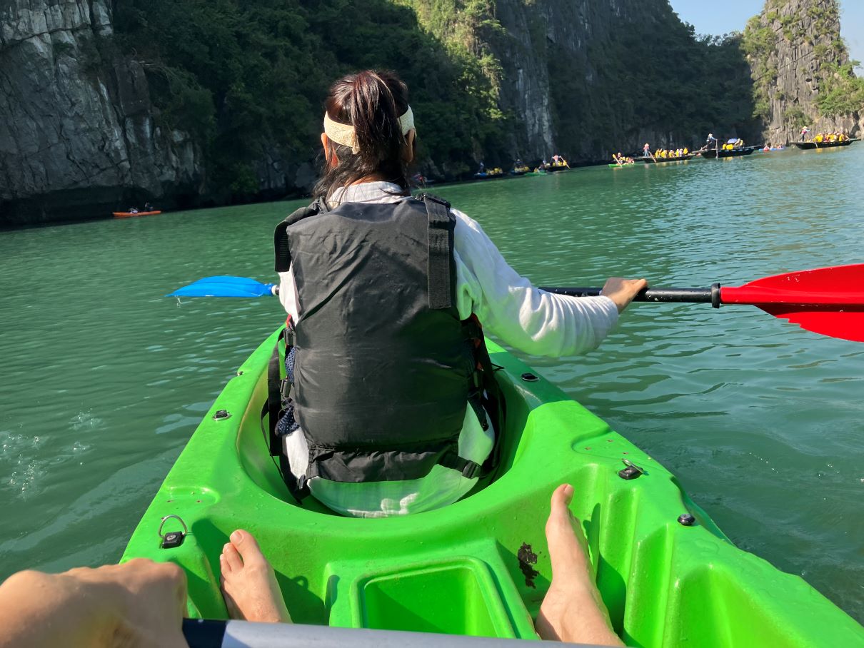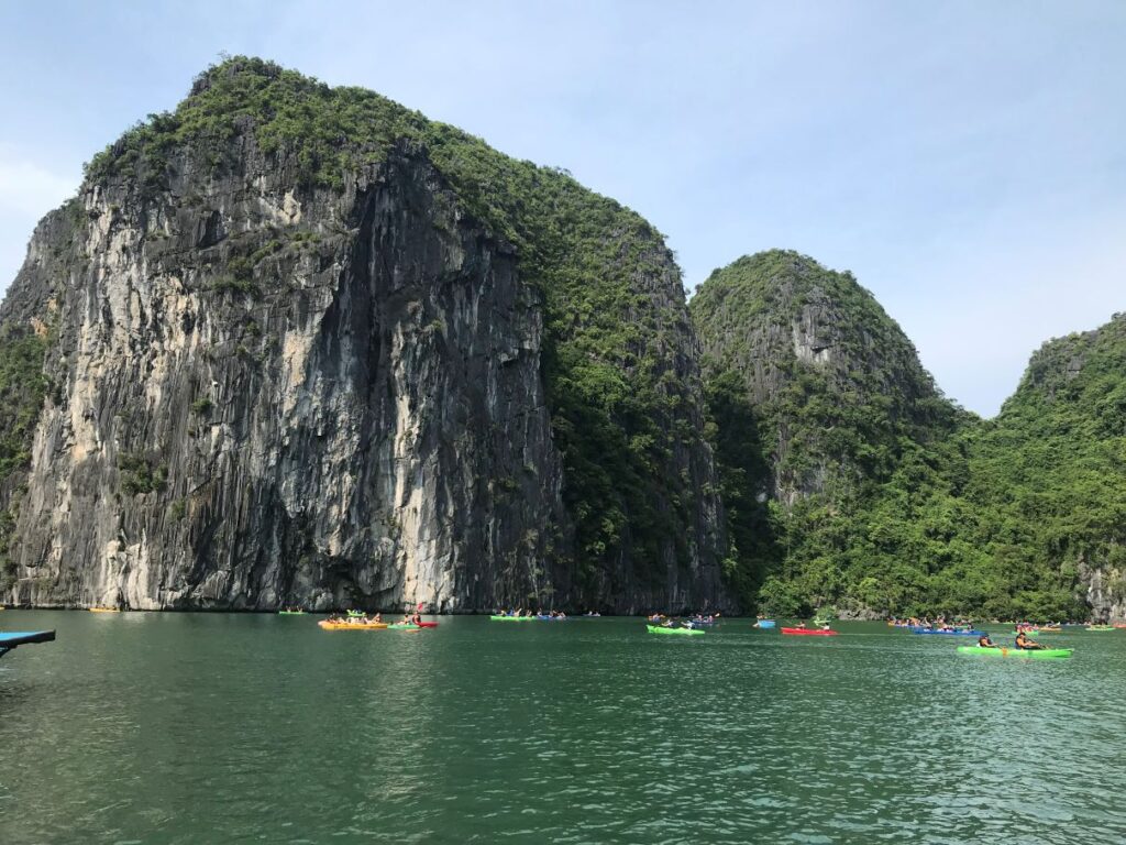 そして、景色を鑑賞するばかりがハロン湾クルーズではありません。今回乗ったヘリテージクルーズに限らず、どのクルーズツアーにも、カヤックをしたり、ハイキングをしたりと、体を動かすアクティビティがクルーズのスケジュールに組み込まれているので、1日があっという間に過ぎてしまいます。飽きることがありません。