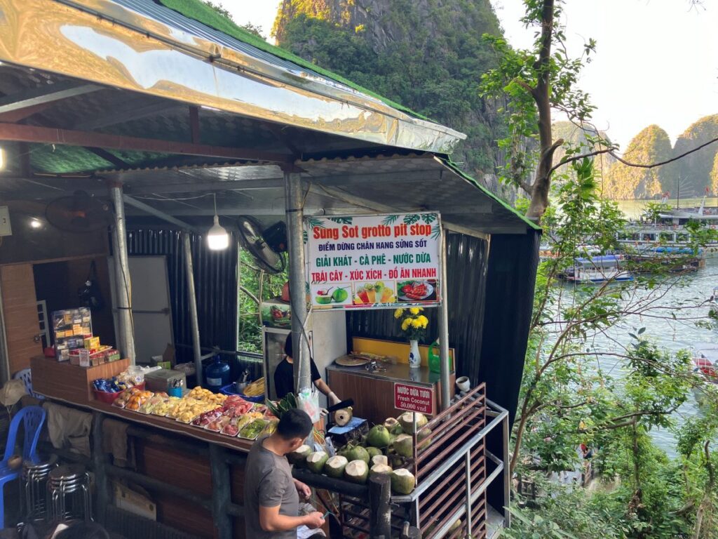 ハノイからハロン湾へ行くときの休憩所はキレイ目のサービスエリアか、外国人向けのお土産屋も兼ねた休憩所なのですが、ニンビンからハロン湾へ向かった今回はめっちゃローカルな休憩所でした。