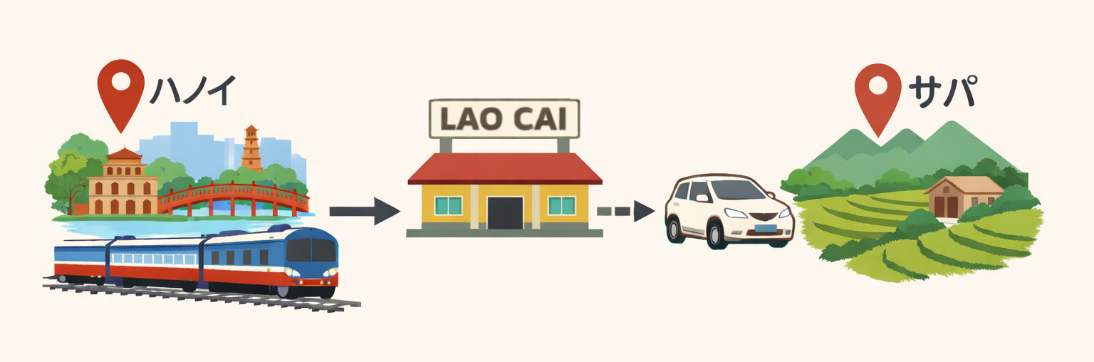 ハノイからサパへの交通手段(バス/列車/専用車)