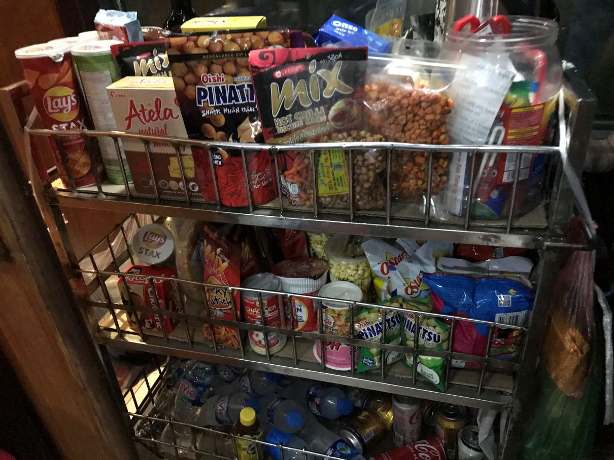 車内販売はスナック類とインスタント麺、飲み物といったところ。