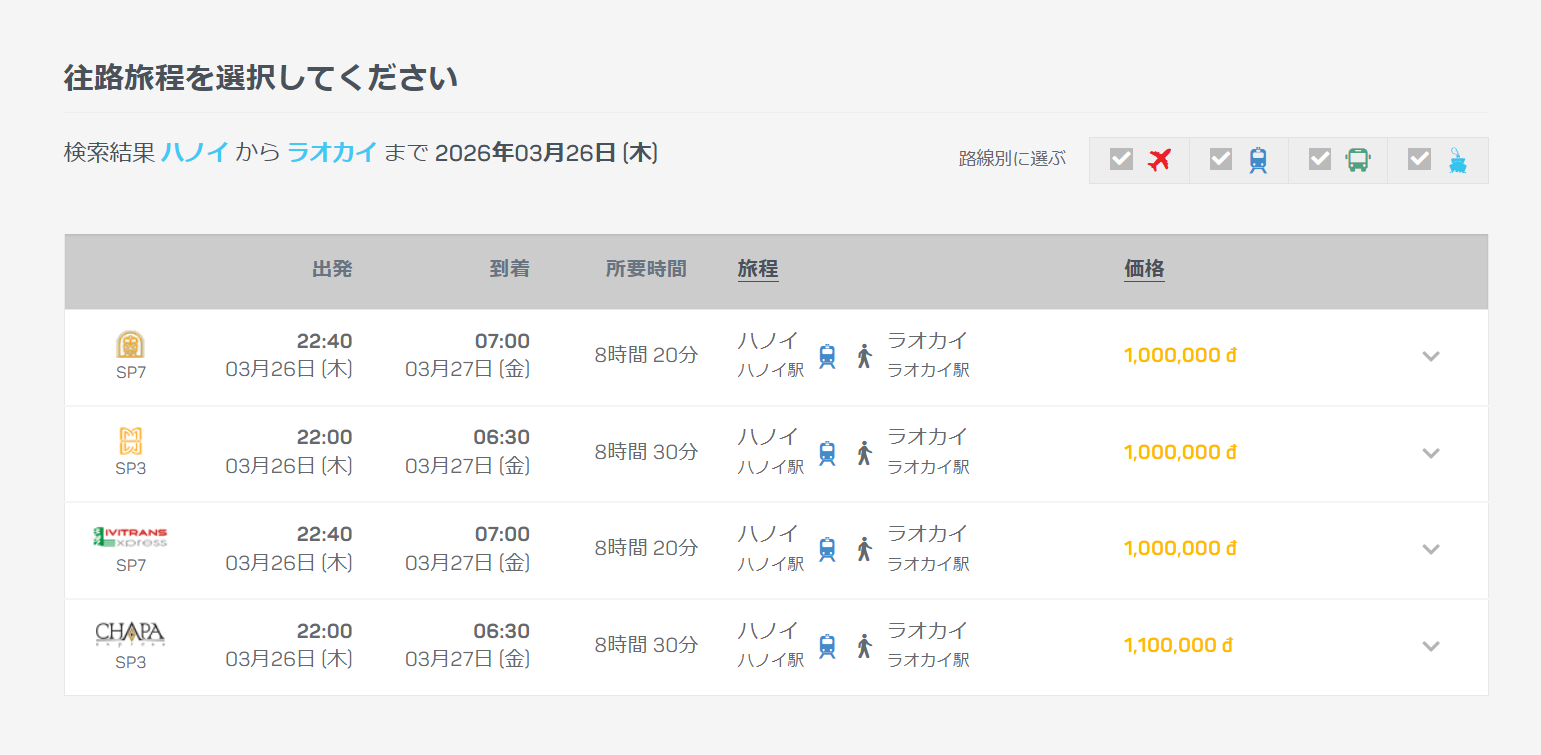 複数の旅行会社がサパ行きの列車を運行しているので、自分の好みや予算に合った列車を見つけてください。