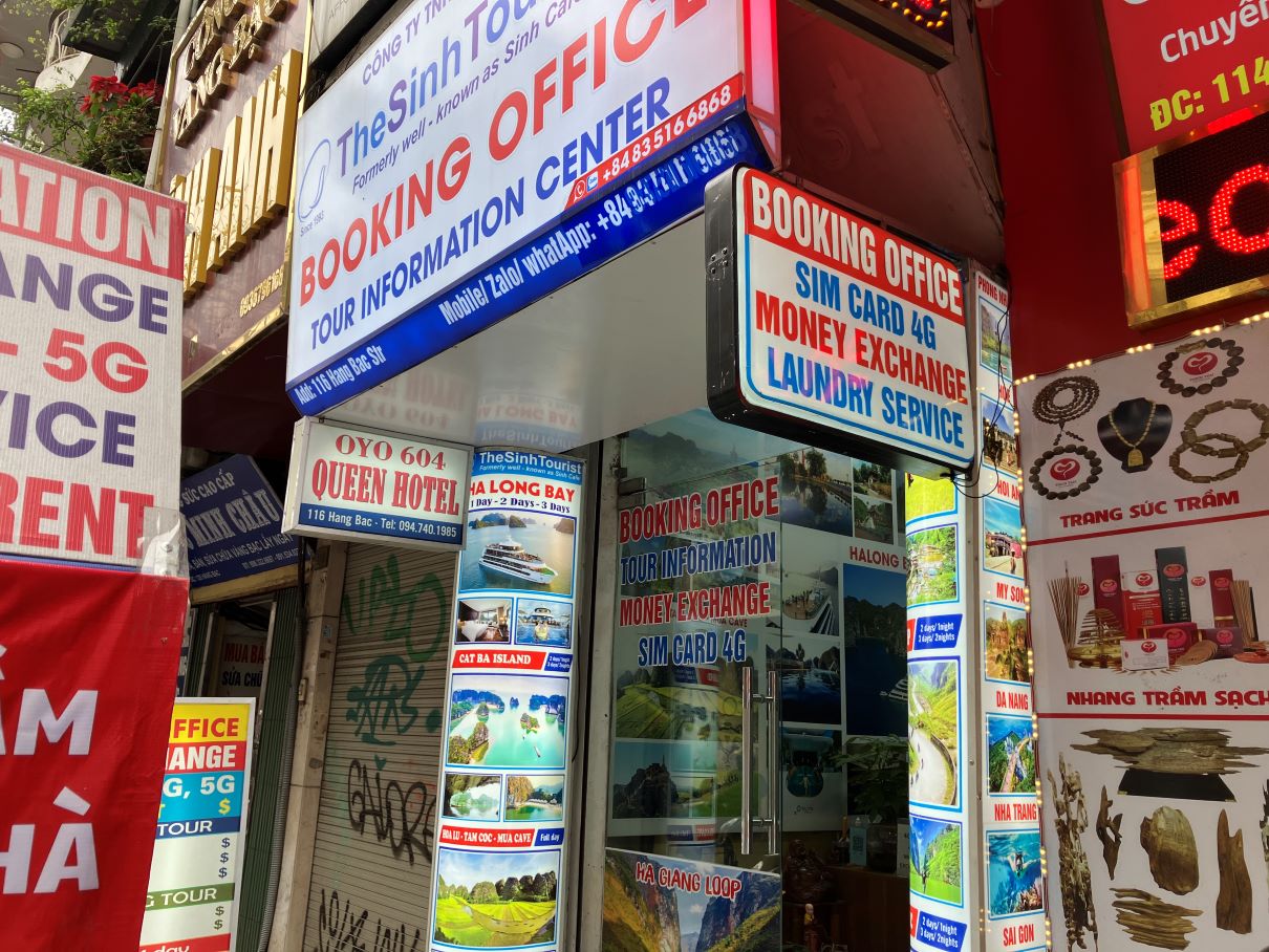 ハノイの街中には旅行代理店が多数あります。また、ホテルもチケット手配を行っているところが多いです。