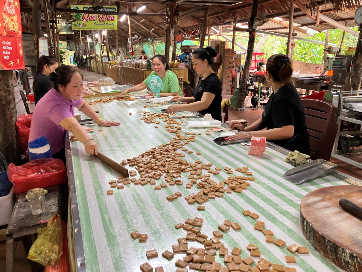現地に行ってみるとわかるのですが、「①手漕ぎボート、②ココナツキャンディー工場、③ハチミツ農園、④伝統音楽を聞きながらのフルーツ試食、⑤蛇との触れ合い」、この5つがセットになった観光ルートが用意されているのです。