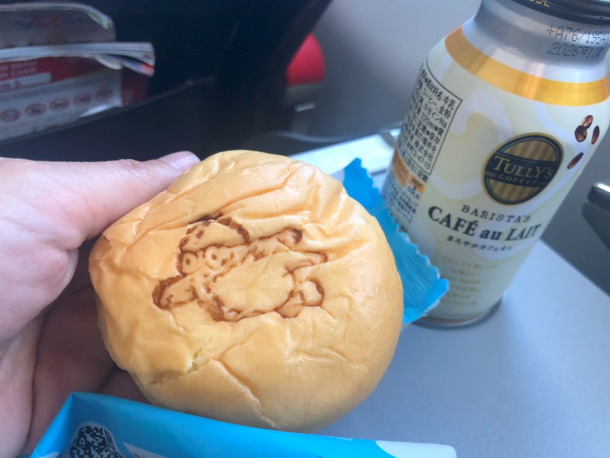 私は旅行プランを考えたり、ちょっと寝てみたり、そして、空港で購入しておいた八天堂のくりーむパンを味わったり。やわらかいパンにとろとろのクリーム…幸せなひと時でした。