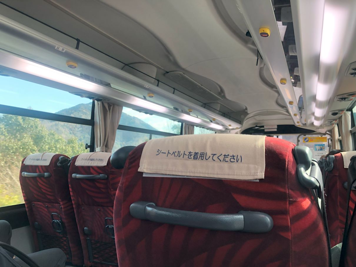 バスは2席分を一人で使えるくらいの込み具合でした。