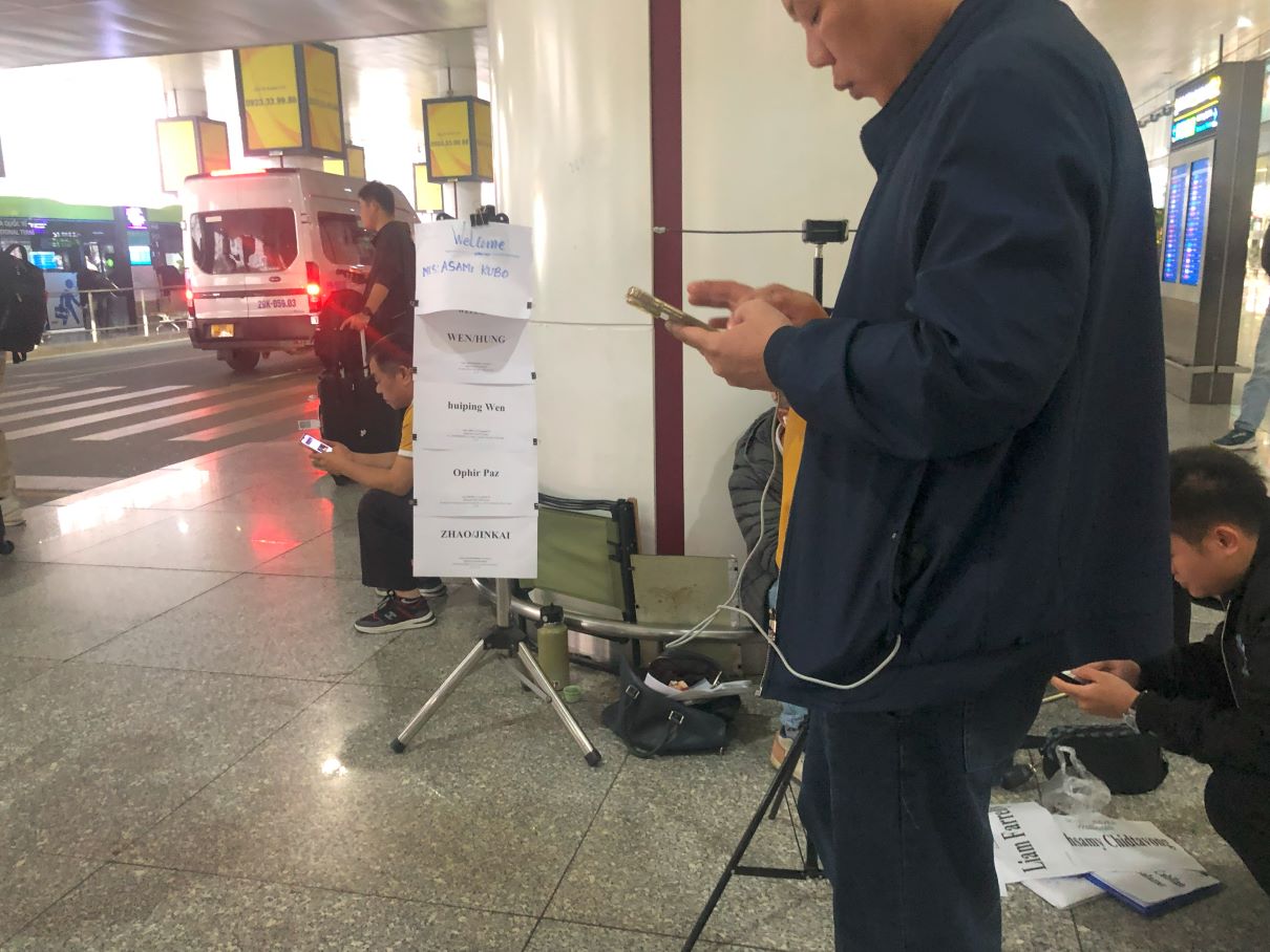 入国審査の方へ向かって通路を歩いていくと、Klookのボードを持ったお兄さんがちゃんと待っていてくれましたよ。名前を言って、スマホでKlookの予約画面を提示。