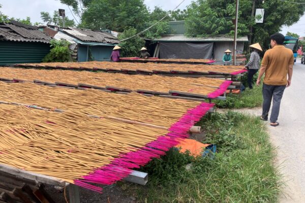 クアンフーカウ村は、ハノイ中心部から車で約1時間の場所にある線香づくりの村です。