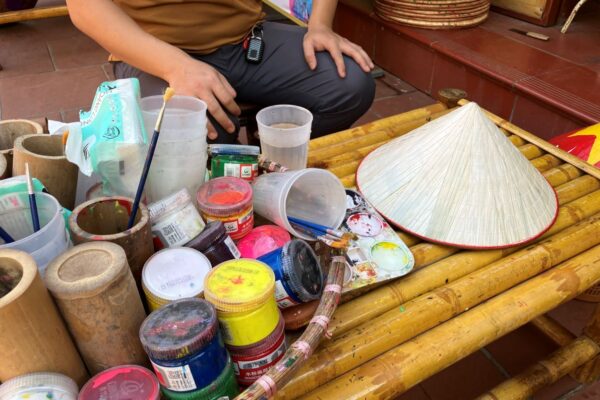 チュオン村でご自身で絵付け体験をした菅笠をかぶり、線香村やチャンアンで素敵な写真を撮りましょう。